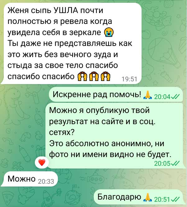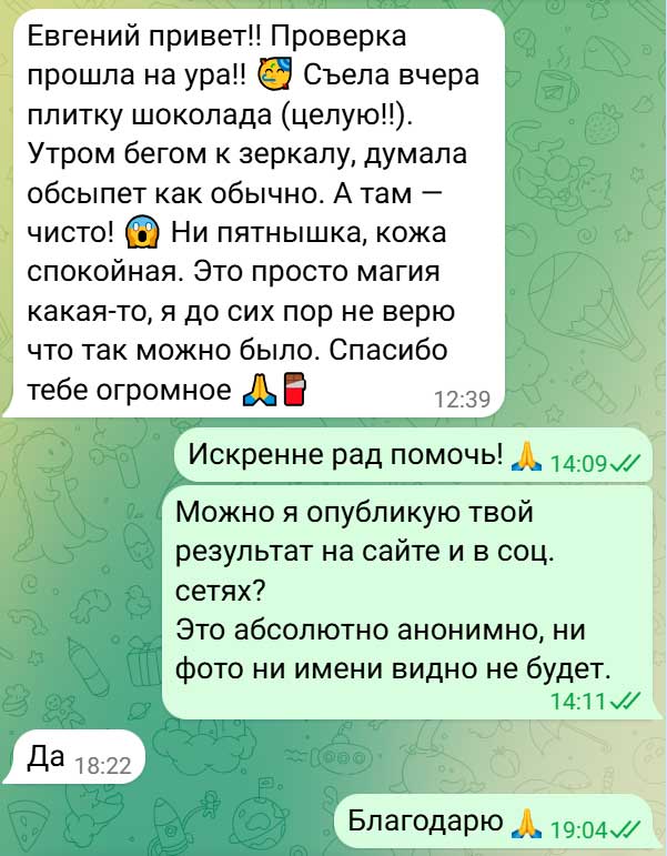 Давайте по честному – вы лечили кожу. Вы работали со следствием. Мы будем работать с самой глубокой причиной.